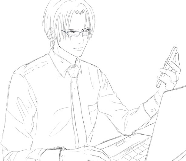 2016/05/16 Category : 雑記 久々にイラスト 恋灯篭以外の登場人物紹介を新しい絵と置き換える!というプチ目標があるので、過去絵(羞恥プレイ)の納得いかぬ彼達を新規で描いています(笑残すところ、渋谷、澪、椎堂、ニール、クリスとなっています。うぅ……先が長い;今回は渋谷を下描き中〜。お話を連載中に描きたかったのですが、まぁ、当然のように間に合わず。今頃になってやっと着手しました。まだ適当なラフのちょい後ですが、現在こんな感じです。(↓クリックで拡大)謎シチュエーションw説明をつけると、残業中に玖珂からメールが届いて、周りに誰も見ていないのを確認した後スマホを見て、そのメッセージを読んで頬染めになってしまう渋谷です(笑「あ……、玖珂さんからメールが」みたいな、多分メールにはサラッと当然のように、祐一朗呼びの甘い愛のセリフが書かれていると思われ。これ、まだ色ぬりまで進んでいませんが、私黒髪を塗るのがとても苦手なんです;実は佐伯も当初の設定では黒髪だったのですが、塗りずらいのと、かなりの長髪なので重くなりすぎないように焦げ茶に変更したという……。なので、色塗りで失敗してボツになったら笑ってやって下さい^^;小説の方は結構順調に進んでいます。案外一章ぐらい消えても、覚えていてどうにかなるもんですね。ここ最近ブログの更新よくしてるな、私……w拍手お礼とかを含めてですけど、やっぱり何処でもいいのでこうして何かを書いていると落ち着くのです(笑)独り言万歳wあ、そうだ。拙宅にあったカウンターがトップページから消えたようになっていますが、こっそり最下部へと移動してあります。またきりがいい所で記念イベント出来たらいいな〜なんて思っています。それではまた次回!